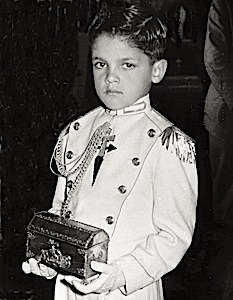 En cuanto a la foto de hoy. Ese vestido de comunión soy yo. No pertenecía a la Falange. Pero me tocó ser el niño elegido por algún procedimiento que ignoro en la entrega de una ofrenda en Lugo,ofrenda que iba al parecer contenida en ese cofre que llevo entre manos. Algún día lo comentamos porque puede ser entretenido. Por cierto, la foto del niño que apareció antes en otro post era mía.