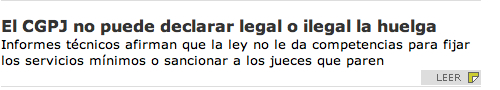 Ahora le oca el turno al Consejo del Poder Judicial. Dicen que mañana hay un pleno extraordinario de ese organismo. Algunos están solicitando que se pronuncie sobre la procedencia o improcedencia del derecho de huelga de los jueces. Constitucionalmente no puede hacerlo, pero políticamente es un baza que algunos -ciegos- parecen querer jugar como último remedio a los males que ellos mismos crearon. No creo que el Consejo entre en ese juego, a pesar de sus muchos pesares. Seguramente se centrará en los servicios mínimos, asunto que sí le compete, pero sin entrar en declarar la legalidad o ilegalidad de la huelga. Pero si lo hace la sorpresa será mayúscula. Si no al tiempo.