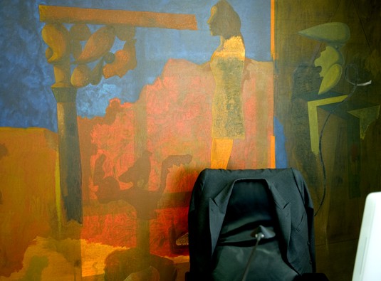 La imagen del comienzo me llama mucho la atencion, me gusta el color, la luz, la frescura, la armonia de la pintura, por cierto me gustaria saber de quien es, pero ese traje ahi…, no acaba de encajar rompe la composicion, me resulta demasiado austero, es un poco la antitesis de todo lo anterior.