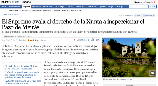 Una noticia basada en un hecho: la resolución del tribunal Supremo sobre las actuacioness de la Xunta de Galicia en relación con el pazo de Meirás asignado a la familia Franco. Tenemos un hecho y dos noticias diferentes según se lea El Mundo o El país Interesante
