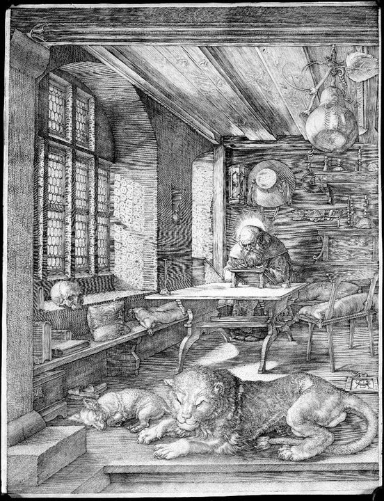 Durante muchas generaciones este grabado, San Gerónimo en su celda, ha venido fascinando a espíritus contemplativos. Pues ¿a quién no le gustaría compartir esa calma……….?