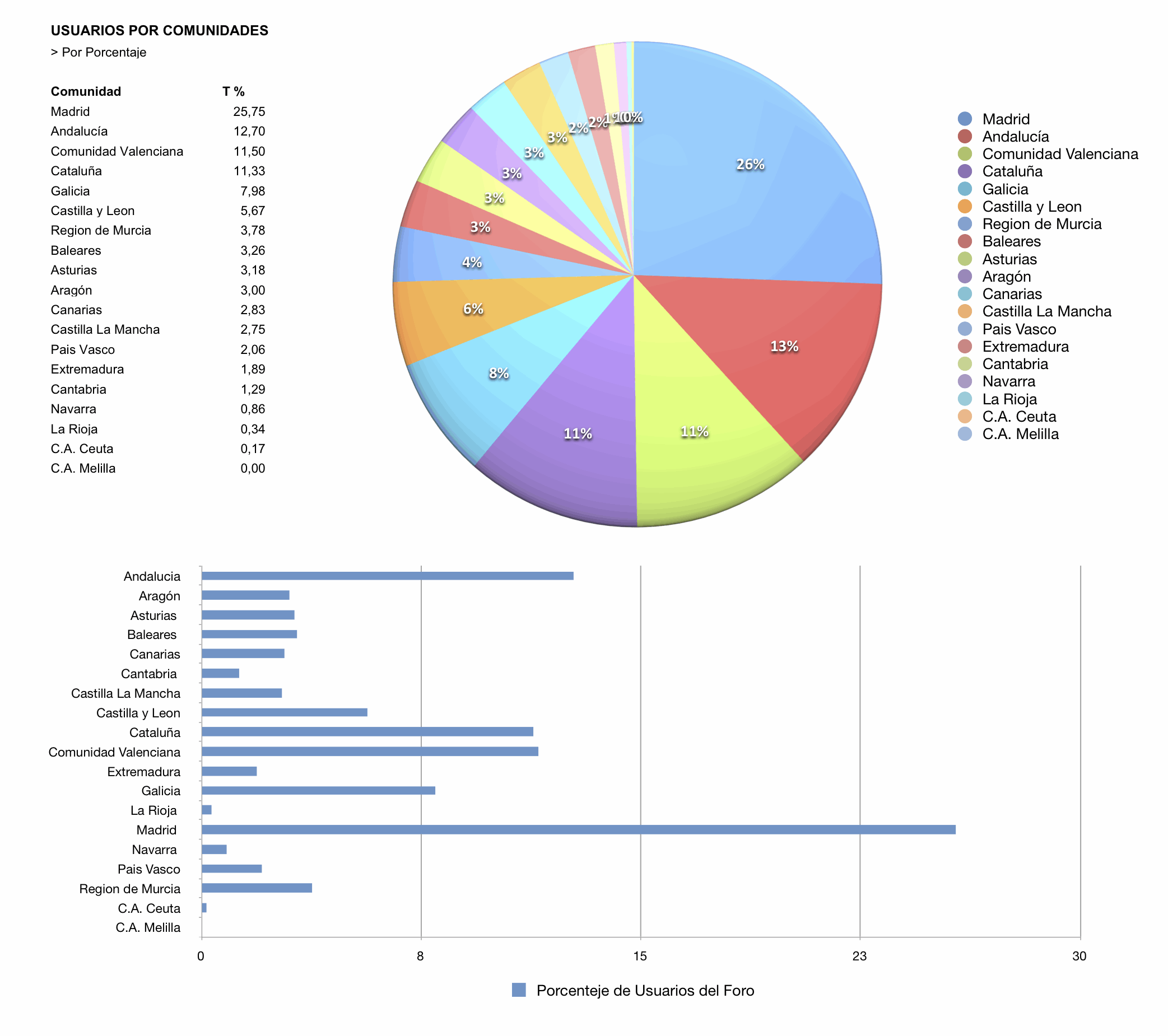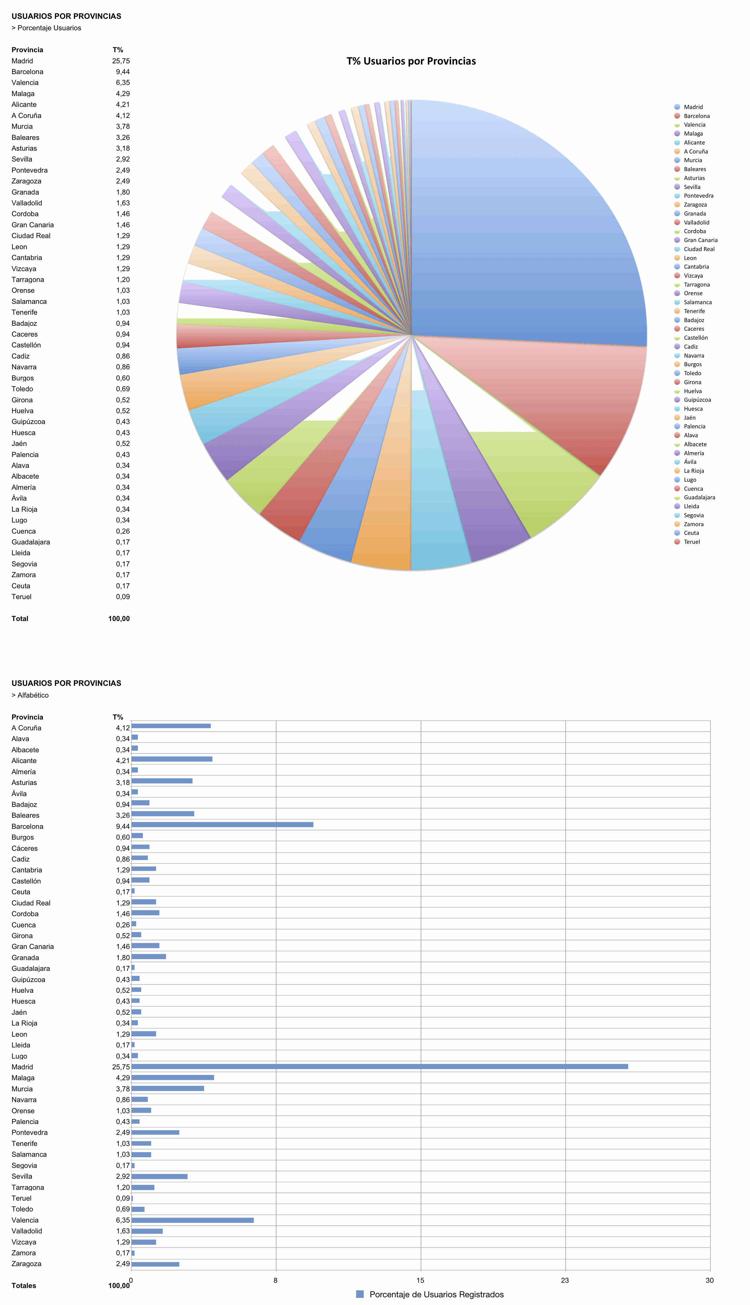 Partimos de un desglose de usuarios por Provincias y por Comunidades o Regiones (por no usar términos como naciones, realidades nacionales, comunidades autónomas, etc.)
